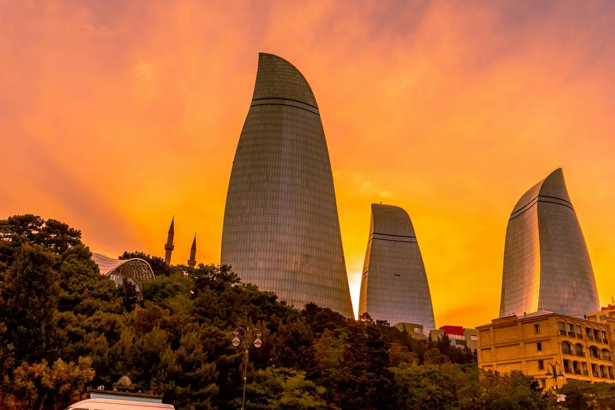 Flame Towers — осмотр символа современного Баку в вечерней подсветке